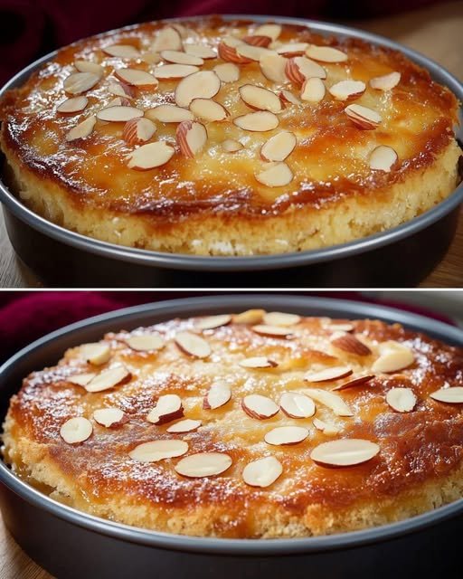This soft, buttery yeast cake is topped with a sugar-butter crust, soaked with cream, and finished with almond flakes for a rich and tender texture. It’s similar to European bakery cream cakes and perfect for tea or special occasions.