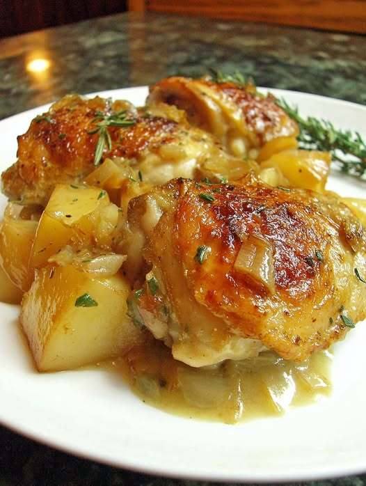 This cozy one-pan meal combines crispy chicken thighs, tender golden potatoes, and a luscious herb-infused cream sauce. Perfect for a comforting weeknight dinner or an elegant meal for guests.