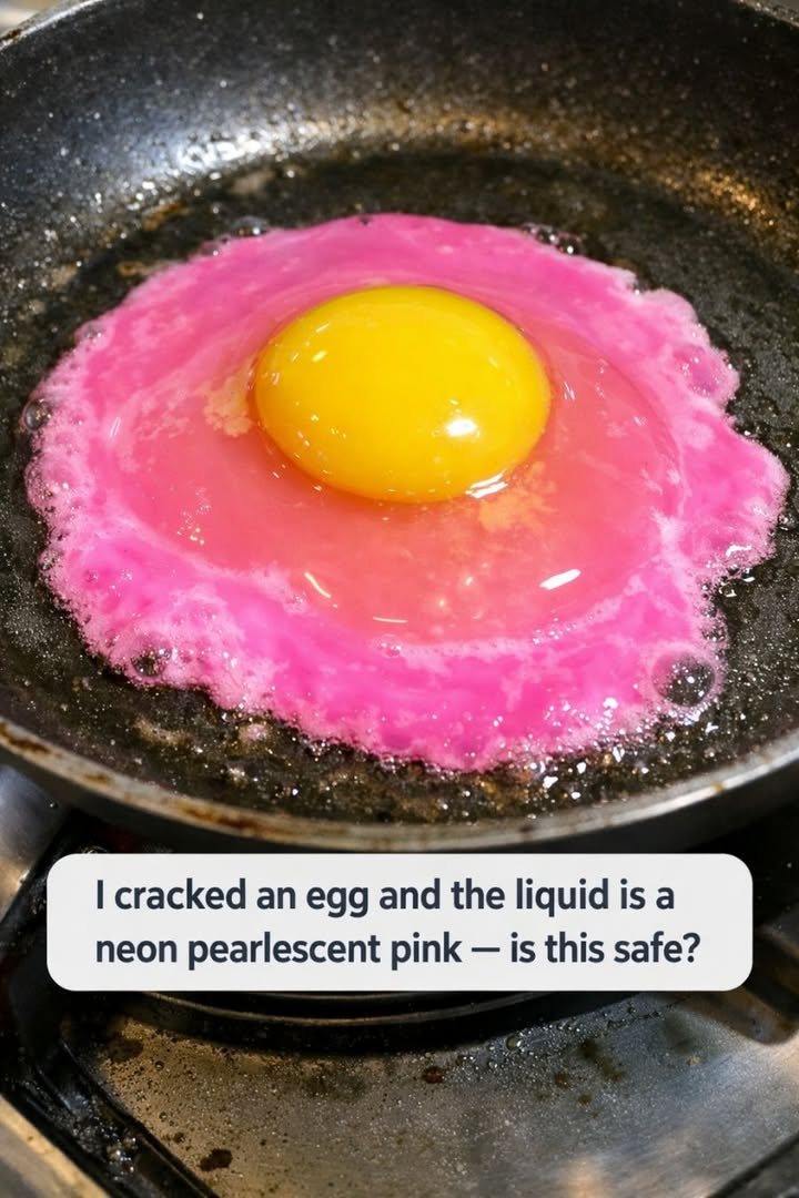 I cracked an egg and the liquid is a neon pearlescent pink — is this safe?