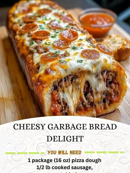 Are you craving something cheesy, savory, and downright irresistible? Whether you’re hosting a casual dinner party, having a cozy night in with your family, or simply looking for a fun recipe to try on a lazy weekend, Cheesy Garbage Bread Delight is the perfect solution. This recipe combines the crispy, golden allure of pizza dough with a mouthwatering filling of sausage, pepperoni, and melted cheeses, all rolled up in a flavorful bundle that’s nothing short of amazing.