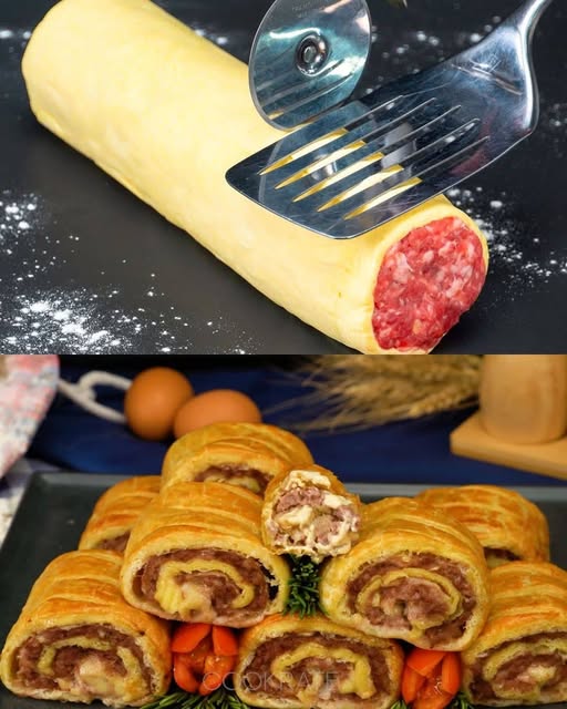 This recipe combines the buttery flakiness of puff pastry with a rich and flavorful minced meat filling. Enhanced with sautéed onions, aromatic spices, and a touch of cheese, this pie delivers a delightful balance of textures and flavors. It’s simple to make, yet the results are so impressive that it’s often mistaken for something straight out of a professional bakery.