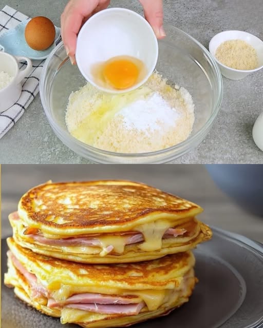 Ham and Cheese Savory Pancakes with Parmesan Batter