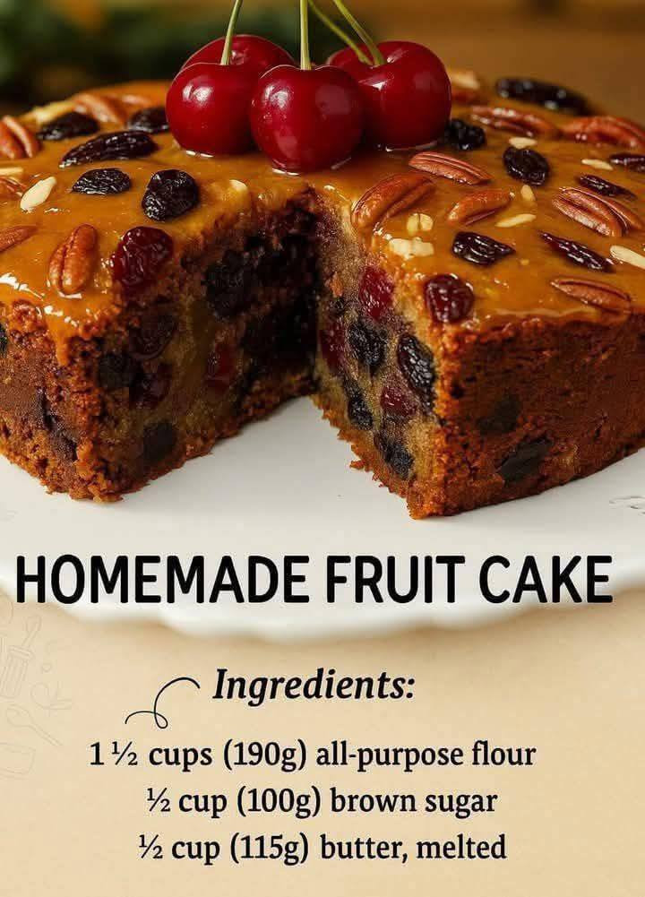 A rich, spiced fruit cake loaded with dried fruits and nuts. Perfect for festive occasions or as a special treat.