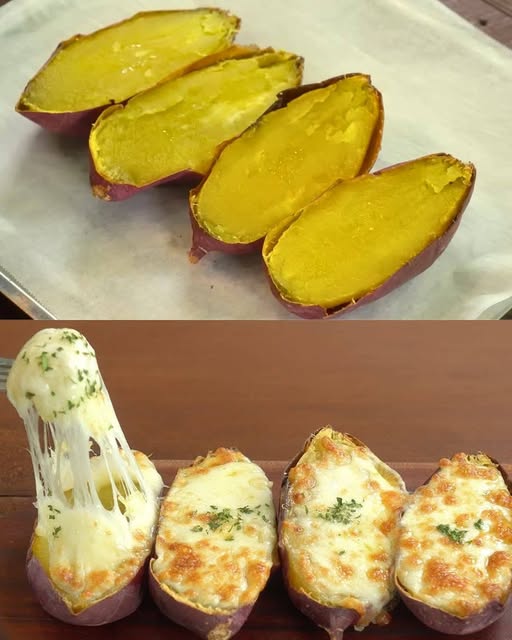 This Honey Sweet Potatoes with Mozzarella and Butter recipe is a sweet and savory treat that combines the natural sweetness of honey sweet potatoes with the creamy richness of mozzarella and butter. When baked in an air fryer or oven, the sweet potatoes turn golden and soft, with the honey flowing out like taffy. Topped with mozzarella cheese and a bit of butter, this dish is an indulgent side or even a main dish for those who love a comforting, sweet meal. The combination of textures—the soft, creamy interior of the sweet potato and the melty cheese—makes every bite a mouthwatering experience.