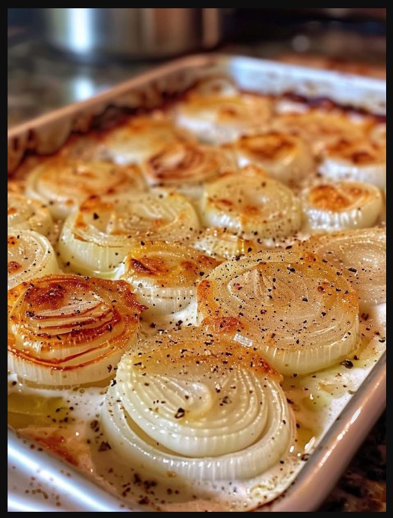 Transform humble onions into a gourmet side dish with this rich, savory recipe. Roasting brings out their natural sweetness, while a creamy Parmesan sauce adds luxurious texture and flavor. To make this dish, you’ll need sweet onions, heavy cream, white wine, Parmesan cheese, butter, olive oil, garlic powder, cayenne pepper, salt, and black pepper. Preheat the oven to 375°F and arrange the onion slices in a 9×13″ baking dish. Drizzle them with olive oil, and season with salt and pepper.