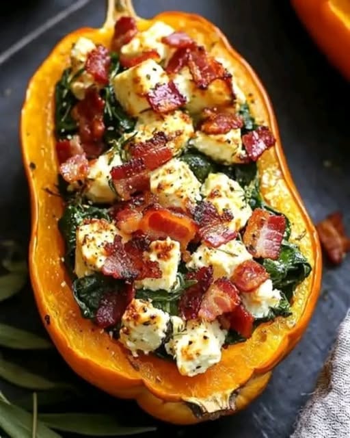 Stuffed Butternut Squash with Feta, Spinach & Bacon