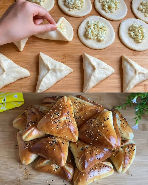 These mini cheese pies are the perfect balance of flaky pastry, savory cheese filling, and aromatic herbs. They’re soft, fluffy, and absolutely irresistible, making them ideal for a snack, party appetizer, or even a light meal. With mozzarella, feta, and cream cheese filling, these pies are packed with flavor and texture, while the addition of sesame seeds and black seeds on top gives them a delightful crunch. Whether you’re serving them for a special occasion or simply craving something savory, these pies are sure to be a crowd-pleaser.