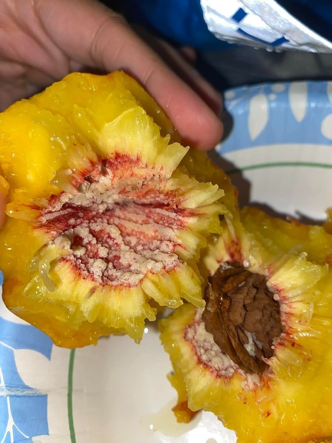 Fruit Condition: The surrounding peach flesh is still firm, juicy, and shows no signs of spoilage.